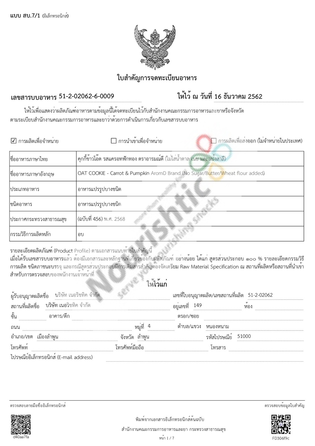 เลขที่อนุญาติ 51-2-02062