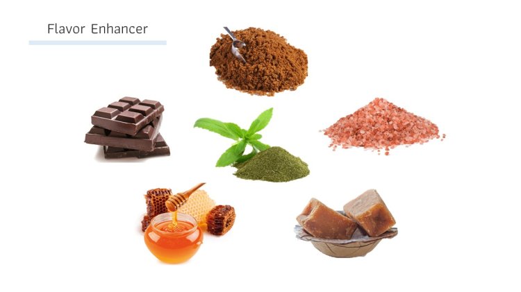 วัตถุดิบกลุ่มปรุงรส มีผลโดยตรงต่อการทำให้เกิดรสชาติต่างๆ ในขนม การเลือกวัตถุดิบที่ให้ รสชาติในกลุ่มธรรมชาติจะช่วยให้ประโยชน์ที่ดีกับขนมสุขภาพ ได้แก่ น้ำตาลโตนด มีค่าดัชนีน้ำตาลต่ำ ทำให้ผู้ป่วยเบาหวานสามารถทานได้โดยไม่เป็นอันตรายต่อการเพิ่มระดับน้ำตาลในเลือด , การใช้สารให้ความหวานแทนน้ำตาลช่วยลดการบริโภคน้ำตาลของผู้ที่ต้องการลดความอ้วน หรือผู้ป่วยเบาหวานได้